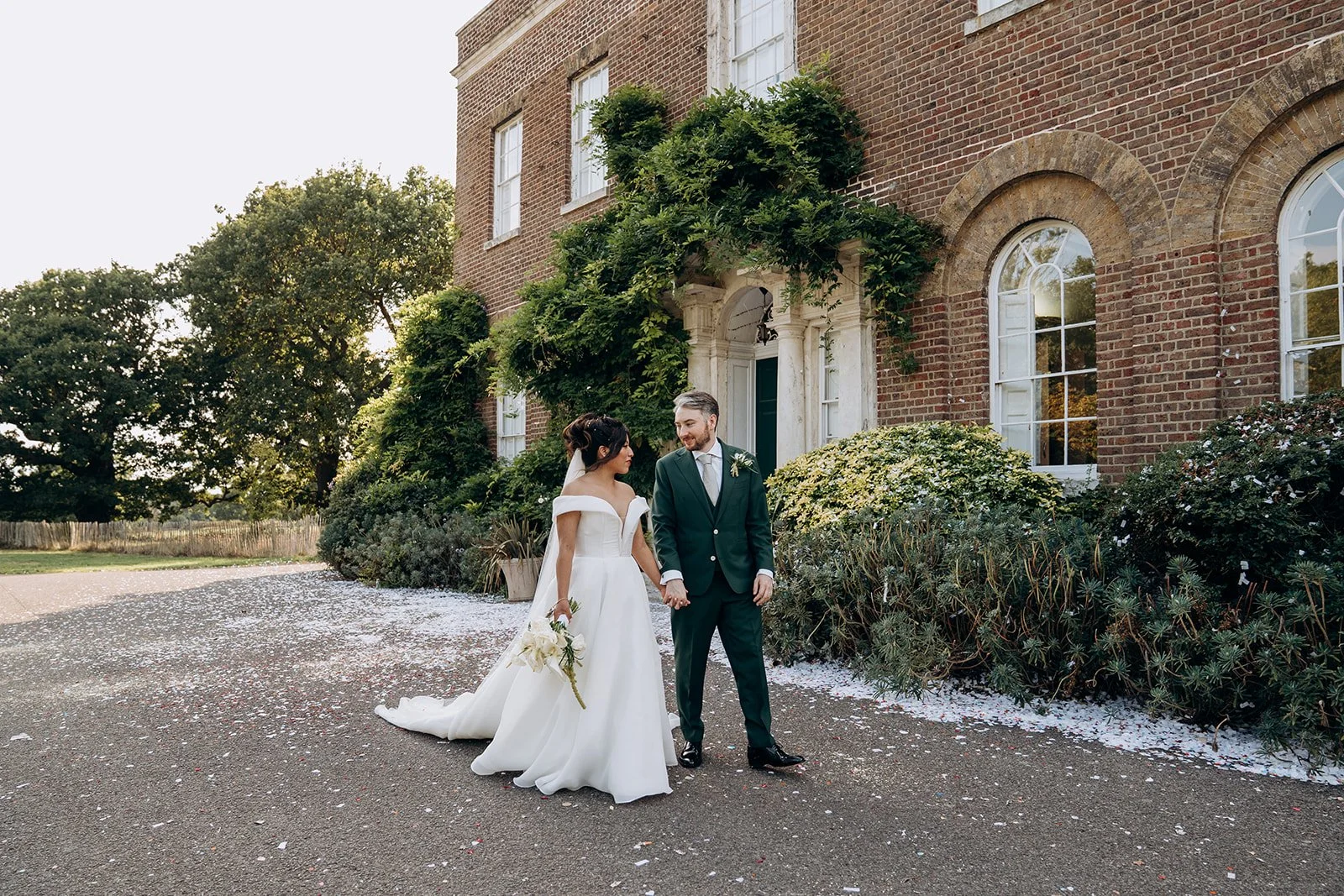 One of the benefits of Morden Park House is that portraits can stay close to the venue. The exterior, courtyard, garden areas and nearby greenery can all be useful for couple photographs and family groups.